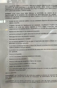 - Manque de propreté des locaux (nettoyage des espaces de production et des équipements « insuffisant », sortie des toilettes pas aux normes)