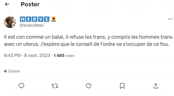 Un gynécologue refuse d’examiner un homme, le militant local Hervé Suaudeau le condamne pour transphobie