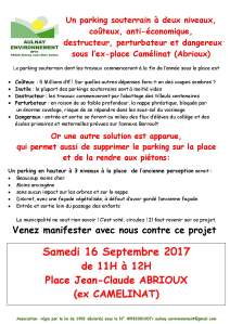 Un parking souterrain à deux niveaux, coûteux, anti-économique, destructeur, perturbateur et dangereux sous l’ex-place Camélinat (Abrioux)