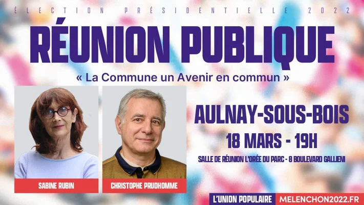 Intitulée « La Commune un Avenir en Commun », cette réunion sera animée par Sabine RUBIN, Christophe PRUDHOMME et Gaston LEFRANC.