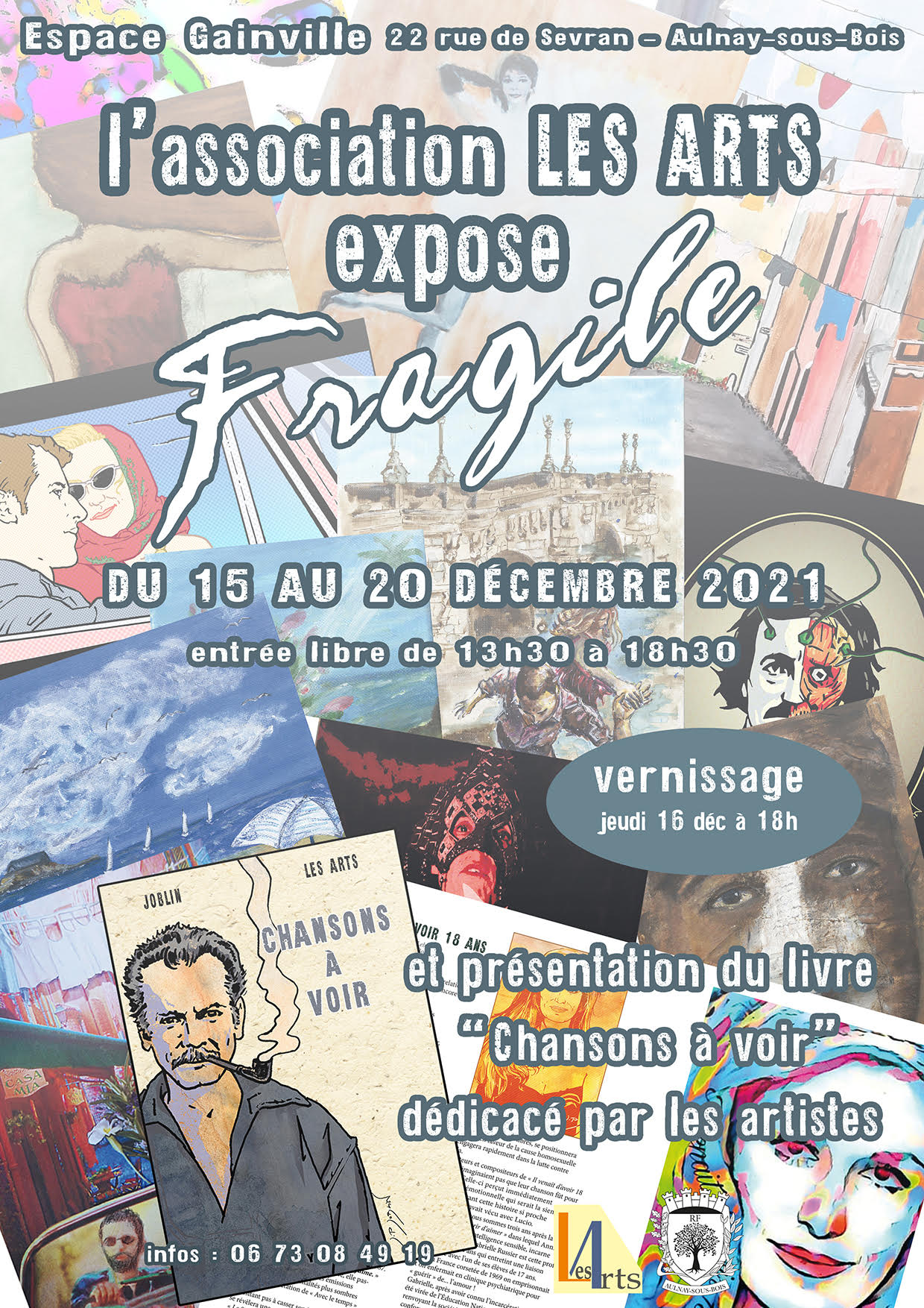 Du 15 au 20 décembre, l’association LES ARTS présente l’exposition « FRAGILE » et le livre écrit par Jean-Pierre Joblin qu’il a co-illustré avec l’association : « CHANSONS À VOIR » (éd Yil) .