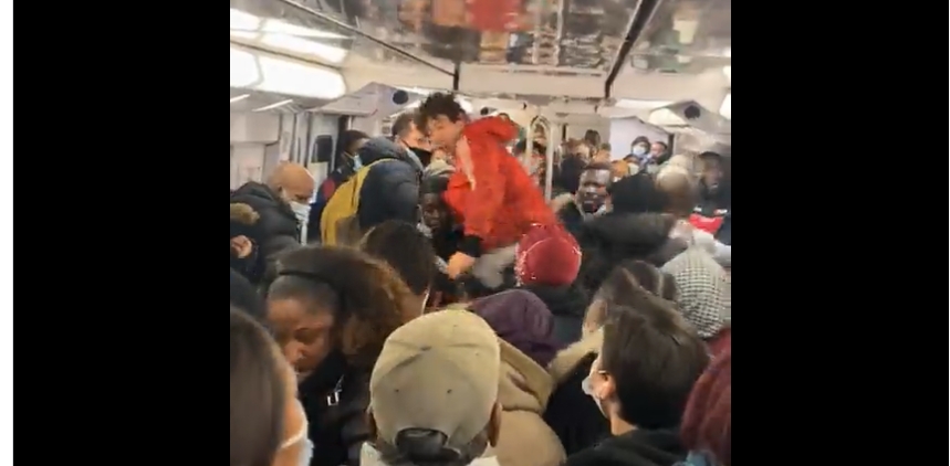Outre cet acte odieux, on remarquera que plusieurs personnes ne portaient pas de masque dans cette rame alors que celle-ci était bondée.