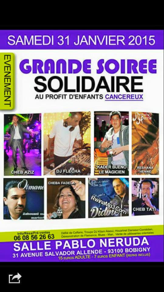 Le 31 janvier 2015, à partir de 19h00 salle Pablo Néruda à Bobigny (31 Avenue du Président Salvador Allende), une soirée Gala de Bienfaisance en faveur des enfants souffrants de Neuroblastome est organisée notamment par les associations Liberté Citoyenne de Karim Bellili et Help Imrane.