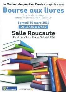 Une braderie de livres se tiendra samedi après-midi salle Roucaute située à la mairie du Blanc-Mesnil (place Gabriel-Péri). Cette braderie est organisée par le conseil de quartier du centre au Blanc-Mesnil.La fête du livre d’Aulnay-sous-bois le samedi 5 mai 2018 au Parc Dumont