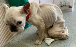 Totalement squelettique, le chien a été immédiatement pris en charge par l’association Action protection animale pour être placé sous perfusion dans une clinique vétérinaire.