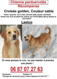 Une récompense pour celui ou celle qui retrouve la chienne volée ou perdue Leeloo