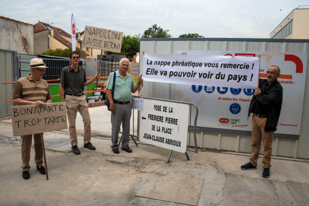 Aulnay Environnement manifeste contre le parking souterrain Abrioux et la dénomination du parc rue Jules Princet, futur « Cours Napoléon Bonaparte »
