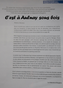 Réaction d’un habitant d’Aulnay-sous-Bois concernant la tribune UDI Oxygène n°263