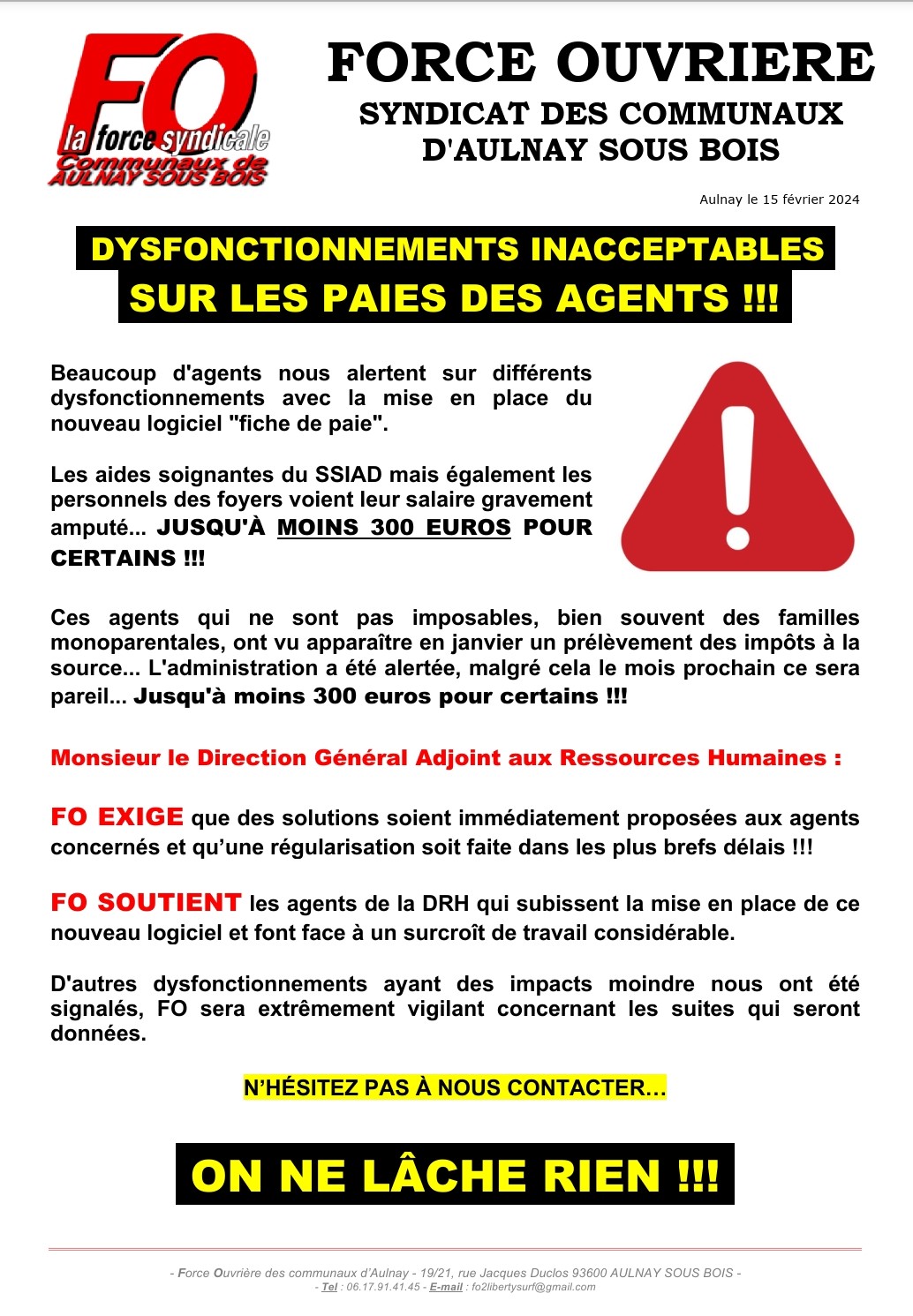 Source : Force Ouvrière communaux d’Aulnay-sous-Bois