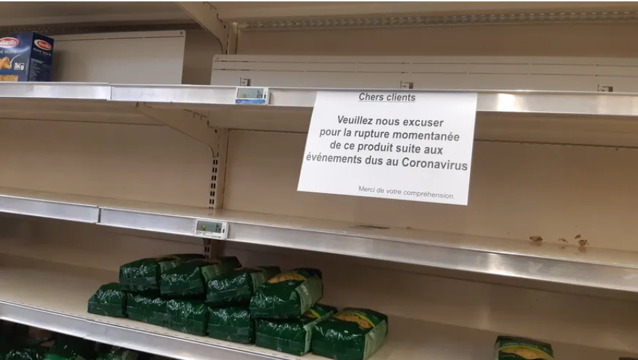 Les grandes enseignes, les petits magasins et les épiceries sont pris d’assaut depuis ce matin par des personnes qui souhaitent faire leur réapprovisionnement pour le confinement total pour enrayer le Coronavirus.