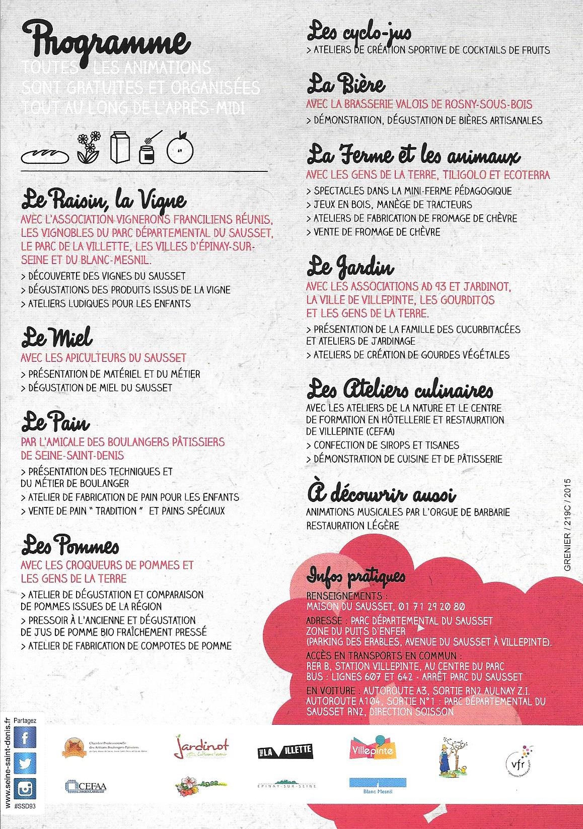 Le conseil général de la seine saint Denis et le département organisent la fête de la vigne et des saveurs le dimanche 4 octobre de 14 h à 18 h 30 au parc départemental du sausset, secteur du puits d’enfer.