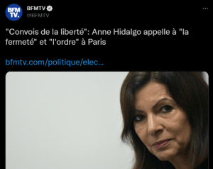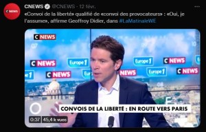 Si on peut ne pas être d’accord avec le mouvement (pollution, ralentissement de la circulation…), on peut se demander si une personne payée par le service public (et donc par tous les Français, y compris celles et ceux qui participent au convoi de la liberté) a le droit de tenir de tels propos. Un peu de décence, et surtout de morale ne serait pas de trop pour une personne qui ne serait peut-être rien sans le service public, service pour tous les Français.
