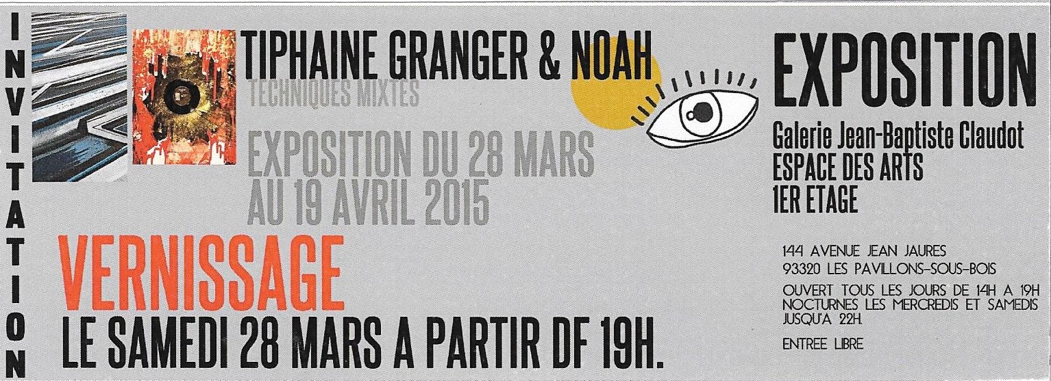 La galerie *Jean-Claude Claudot, espace des arts (1er étage) vous propose une exposition « TIPHAINE GRANGER & NOAH « , techniques mixtes.