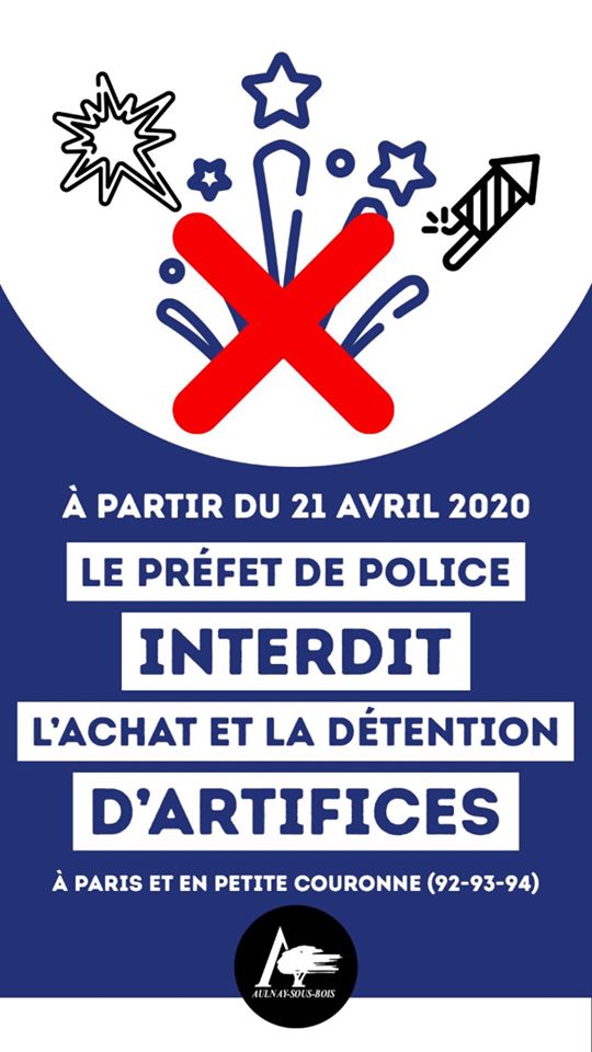 [ARRÊTÉ PRÉFECTORAL] À compter du mardi 21 avril 20h00, le Préfet de Police interdit l’achat et la détention d’artifices à Paris et en petite couronne (Hauts-de-Seine, Seine-Saint-Denis et Val-de-Marne).