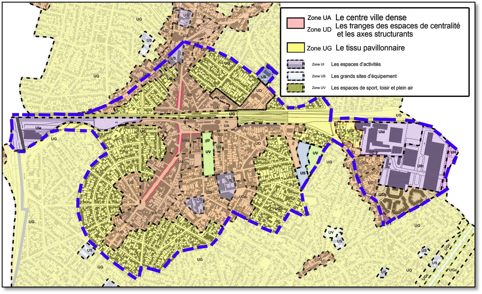 - Zone UA, hauteur d’immeubles autorisée : 20 mètres (RC + 6 étages)