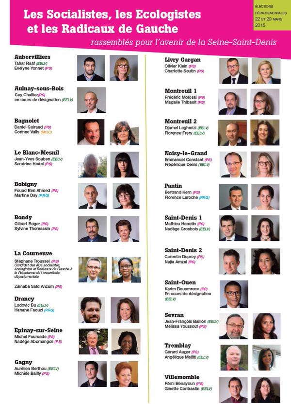 A ce jour il manque toujours une candidate pour représenter la gauche PS/PRG/EELV à Aulnay-sous-Bois et Saint-Ouen. De source interne, il semblerait que bien que EELV 93 accepte de faire campagne auprès du PS à Aulnay-sous-Bois, certains militants locaux font obstruction.
