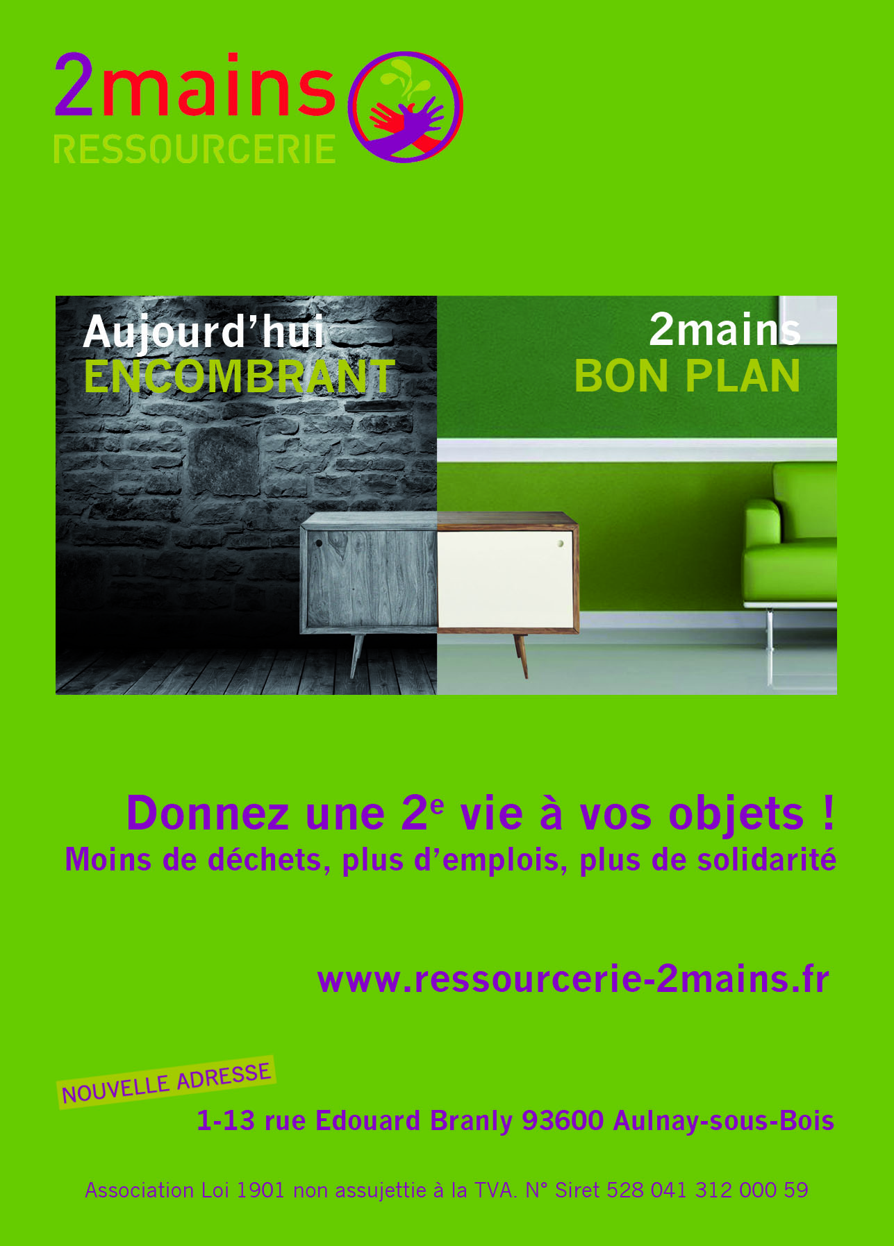 Cette opération vise à faire connaître aux Aulnaysiens les nouveaux locaux de la Ressourcerie 2mains et s’inscrit dans lignée des actions partenariales débutées l’an passé entre notre association et le Réseau des bibliothèques de la ville.