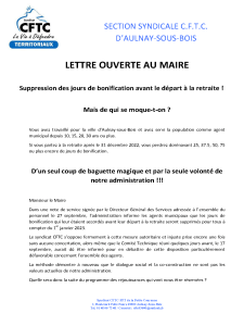 La CFTC Communaux d’Aulnay-sous-Bois s’indigne de la suppression des jours de bonification avant le départ à la retraite