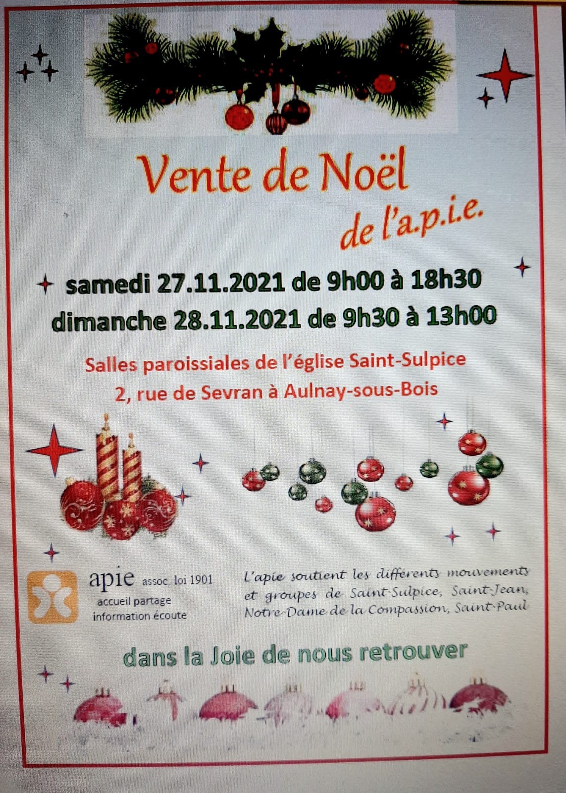 Renseignements auprès d’Aurore Buselin au : 06.28.77.34.85 ou par mail : aulnayrelais@gmail.com