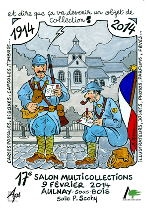 Il y aura plusieurs illustrateurs de cartes postales modernes dont l’Aulnaysien Jean Claval qui a dessiné l’affiche et la carte postale que vous trouverez ci-contre.