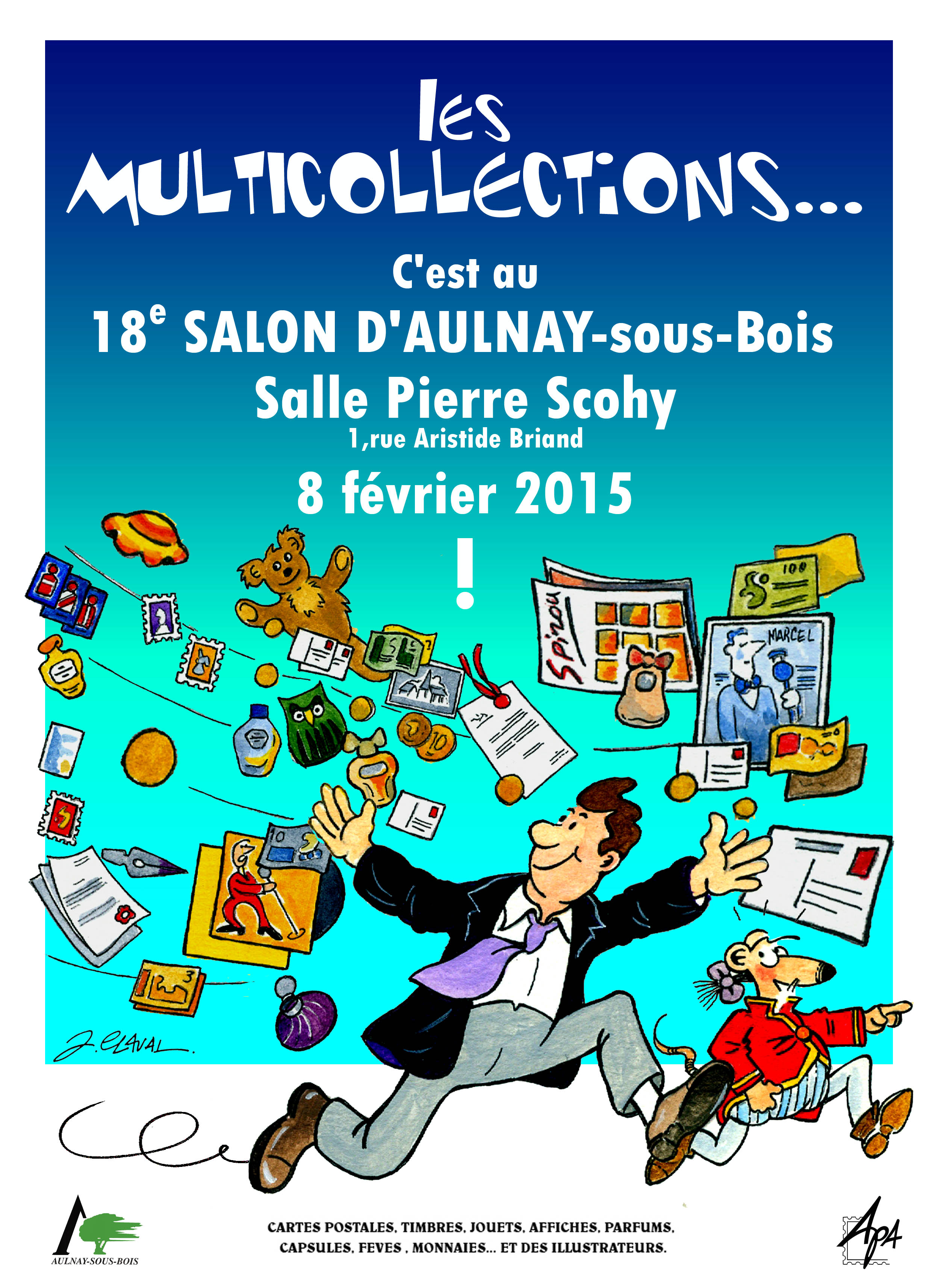 Avec le concours de la municipalité d’Aulnay, l ‘A.P.A. – Amicale Philatélique Aulnaysienne – organise son 18ème salon multicollections, le dimanche 8 février 2015, dans la salle du gymnase Pierre Scohy, de 8h30 à 17h30.