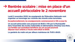 Hier midi, une minute de silence a été observée sur le parvis de l’Hôtel de Ville en hommage à Samuel Paty, professeur de collège tragiquement assassiné vendredi dernier. Environ 150 Aulnaysiens étaient présents.