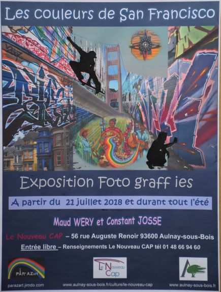 L’association PAR’AZart organise une exposition de photographies sur l’art urbain à San Francisco » Les couleurs de San Francisco », à partir du 24 juillet et durant tout l’été. Cette exposition haute en couleurs présentent 40 clichés de graffs, de Street art tous plus beaux les uns que les autres. Les photos qui ont été réalisées sur deux périodes lors de voyages à San Francisco en 2013 et 2017 et ont figé les œuvres éphémères de la rue qui délivrent des messages et dont la beauté est parfois à couper le souffle !Lieu : Le Nouveau CAP, 56 rue Auguste Renoir, 93600 Aulnay-sous-Bois