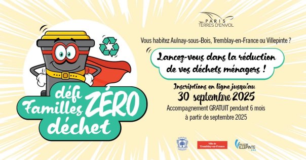 Lancez-vous dans le défi Familles Zéro Déchet ! C’est un accompagnement gratuit de Paris Terres d’Envol pendant 6 mois pour vous aider à produire moins de déchets et à faire des économies grâce à une consommation responsable.
