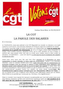 Le 03/09/2019, vous avez adressé à la CGT Soproréal un courrier en réponse à un mail envoyé le 31/07/2019 à la Direction Générale de l’Oréal au sujet des conditions de travail.