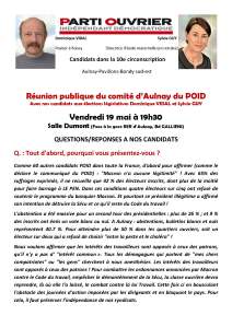 Réunion publique du comité d’Aulnay-sous-Bois du POID pour présenter les candidats Dominique VIDAL et Sylvie GUY