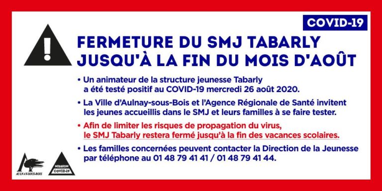 Aulnay-sous-Bois subit une véritable dévastation à cause de la pandémie du Coronavirus. Une 5ème structure, la SMJ Tabarly au Gros Saule, a été touchée et a dû fermer. Une véritable catastrophe pour notre ville.