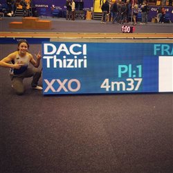 Elle l’a fait. Le record d’Amandine HOMO (4m31) qui était à l’époque le record de France et qui datait de 2000 a été battu ce samedi 24 février à Aubière lors du All Stars Perche organisé par Renaud Lavillenie. Par 2 fois Thiziri Daci en franchissant 4m32 puis 4m37 a effacé des tablettes son illustre coach qui attendait ça, qui espérait ça depuis longtemps. Notre perchiste de poche à qui on a si souvent commentée sa taille (1m57) s’invite dans la cour des très grandes. Là voilà propulsée à la 3ème place du bilan hivernal français toutes catégories, elle qui n’est encore qu’espoir.