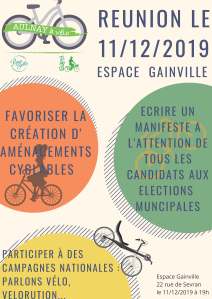 Nous vous proposons de nous retrouver à la salle Gainville (22, rue de Sevran) le mercredi 11 décembre à partir de 19h pour le lancement de « AULNAY à vélo ».