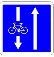 D’un coté de la rue, il y a bien le panneau indiquant aux automobilistes que des vélos arrivent dans l’autre sens :