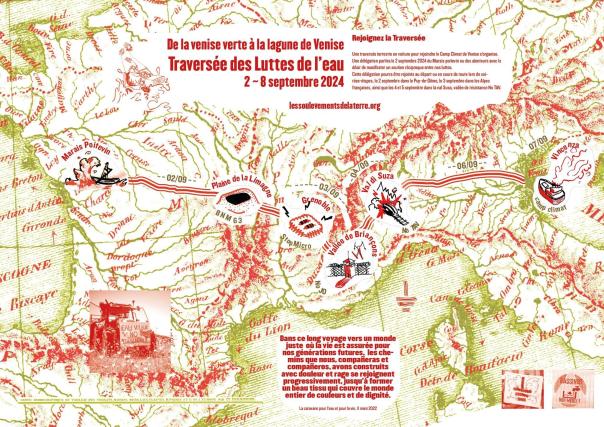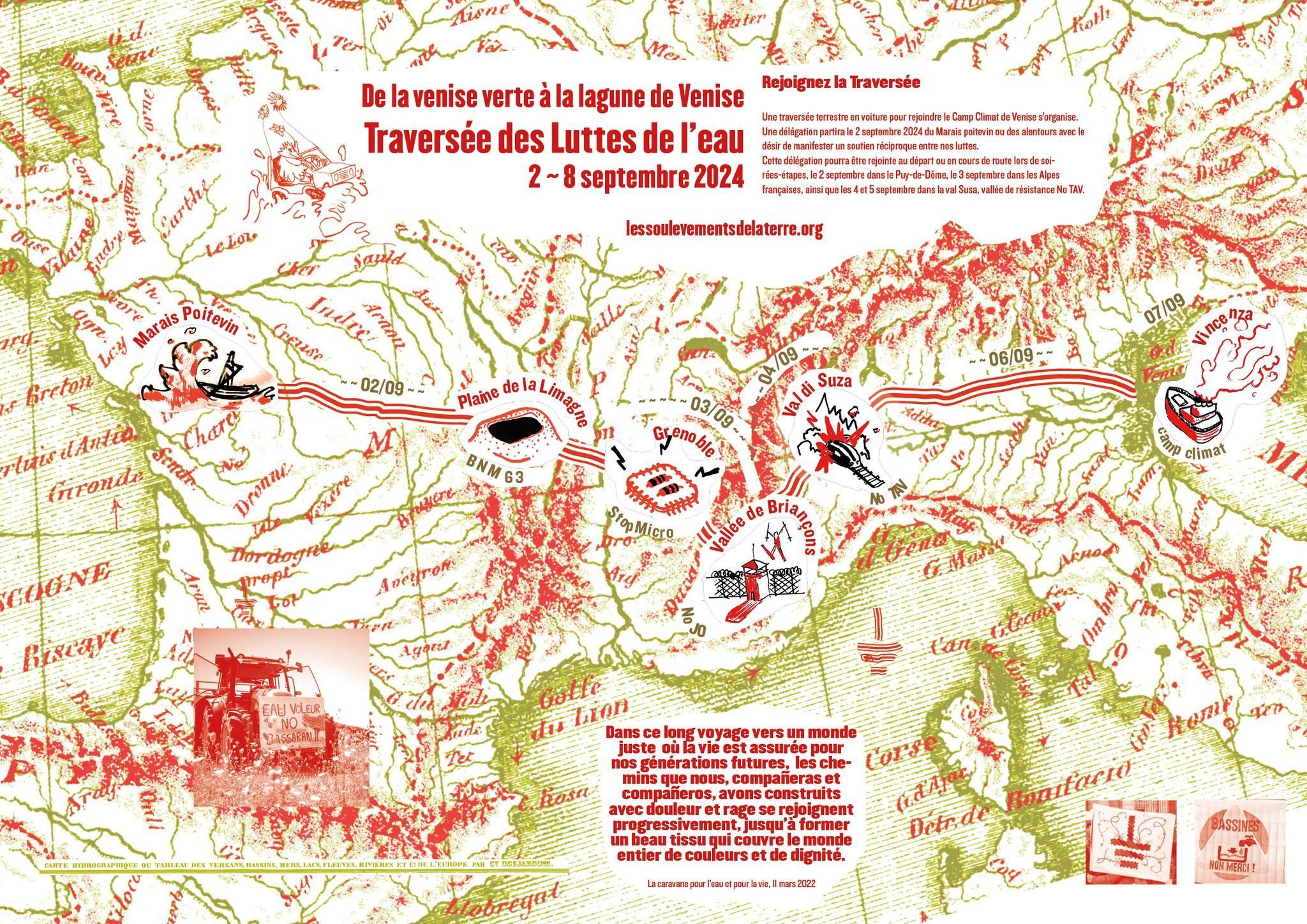 Objectif de cette traversée épique : dire non aux projets de méga-bassines et aux différents projets de lignes ferroviaires à grande vitesse, notamment le Lyon-Turin, indispensable pour le report modal (privilégier les trains de fret aux camions, la ligne actuelle entre la France et l’Italie étant fragile et fermée suite à un éboulement).