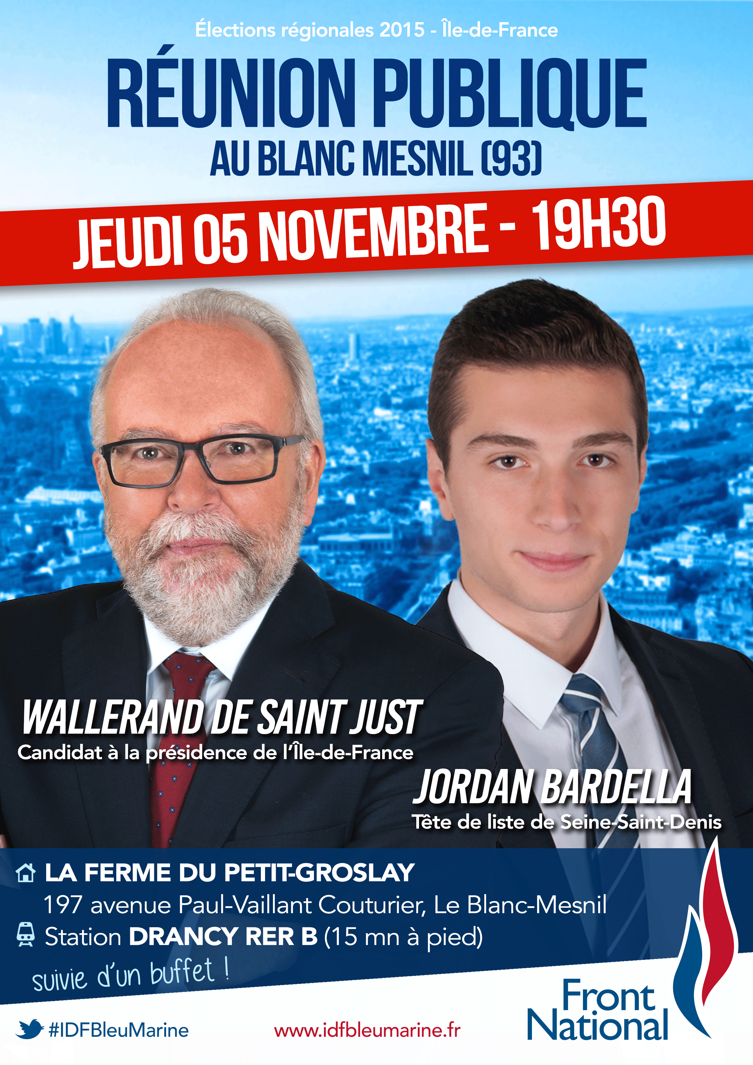 Autre source d’inspiration pour la Droite, draguer l’électorat Frontiste, avec une campagne d’affichage qui indique, en gros : « Voter pour Wallerand de Saint-Just au second tour, c’est voter Claude Bartolone« . Cette tentative de récupération est louable mais est-ce que ce message sera entendu, sachant que de nombreux électeurs du FN ne le font plus pas protestation, mais par adhésion aux idées du parti à la flamme ?